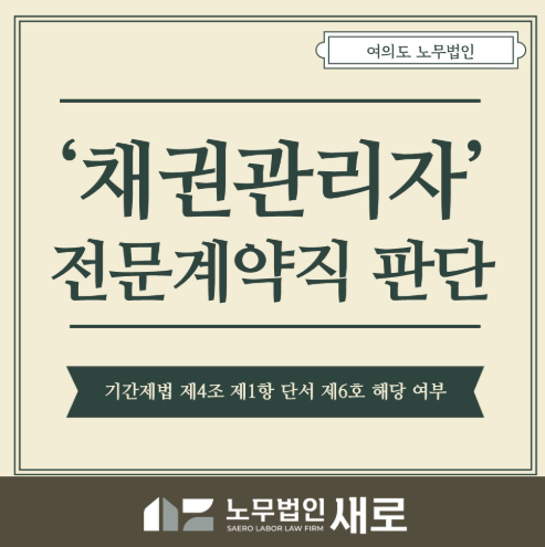 이번 포스팅에서는 ‘채권관리자’ 직무를 수행한 근로자가 2년 제한의 예외에 해당하지 않는다고 판단한 법원 판례를 통해, 전문계약직 예외 적용의 한계를 짚어보려 합니다.